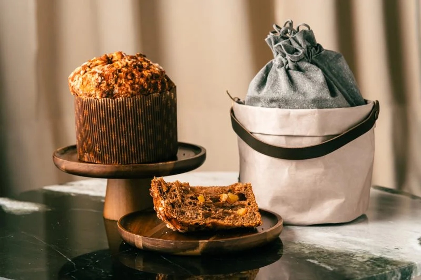O panetone da gelateria, confeitaria e padaria de inspiração italiana Tre Bimbi já chama a atenção pela estética única: mesclada, com parte da massa tingida por cacau – uma dificuldade técnica que se provou muito bem sucedida. “O visual já mostra o cuidado que ele foi feito, é elegante”, comentou Martin. Além de apetitoso aos olhos, ele impressiona com uma massa de “textura e hidratação perfeitas”, nas palavras de Irina. Sobretudo, a personalidade fica por conta da mistura de gotas de chocolate meio amargo e suculentas frutas amarelas – pêssego glaceado, damasco e laranja cristalizada –, com todos os elementos bem entrosados e distribuídos. “Esse panetone propôs algo diferente e cumpriu com esmero. É o tipo que eu escolheria para levar para a minha família”, pontuou Corazza.